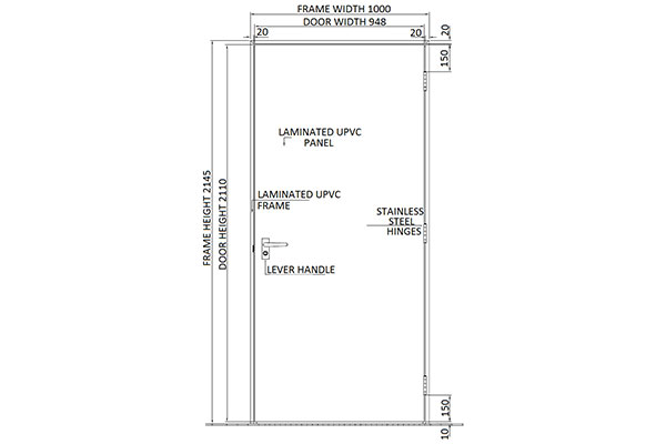 • UPVC decorative frames and doors complete with lockset in laminated finished.